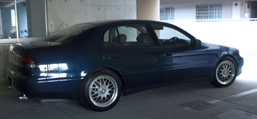 リアはLEXUS GS300の欧州仕様、2本出しマフラーはフジツボのレガリスR 排気性能と静寂性に優れたマフラー タイヤはボディの横面にピッタリフィットしてますね。車高調は最終的にはアラゴスタ製に落ち着きました。アラゴスタにTEINのEDFCを付けています 。 |