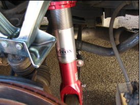 TEINとADVOXのリアダンパーを並べて見ました。 ほぼ、同じストローク長ですね。 ちなみにバネ常数はTEIN 5Kg/mmでADVOXは4.5Kg/mmとADVOXの方が柔いが、のり心地は逆の感じですヨ。 |